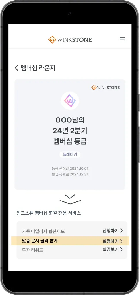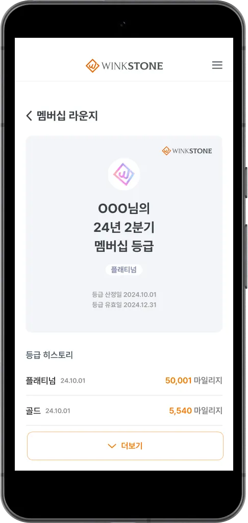 매 분기 1일 10시가 되면, 윙크스톤 멤버십 등급을 확인할 수 있어요!