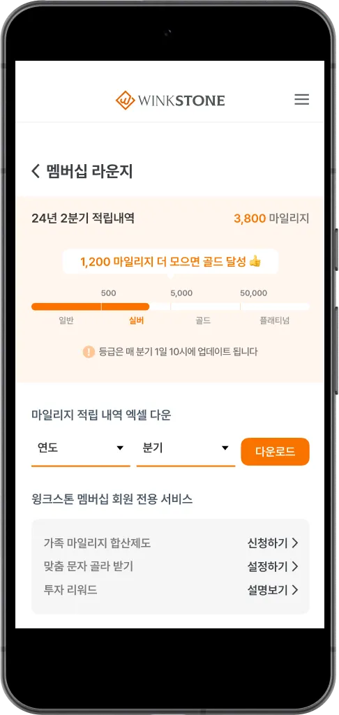 윙크스톤 멤버십 회원이 되면, 투자금액에 따라 마일리지가 별도로 적립됩니다.